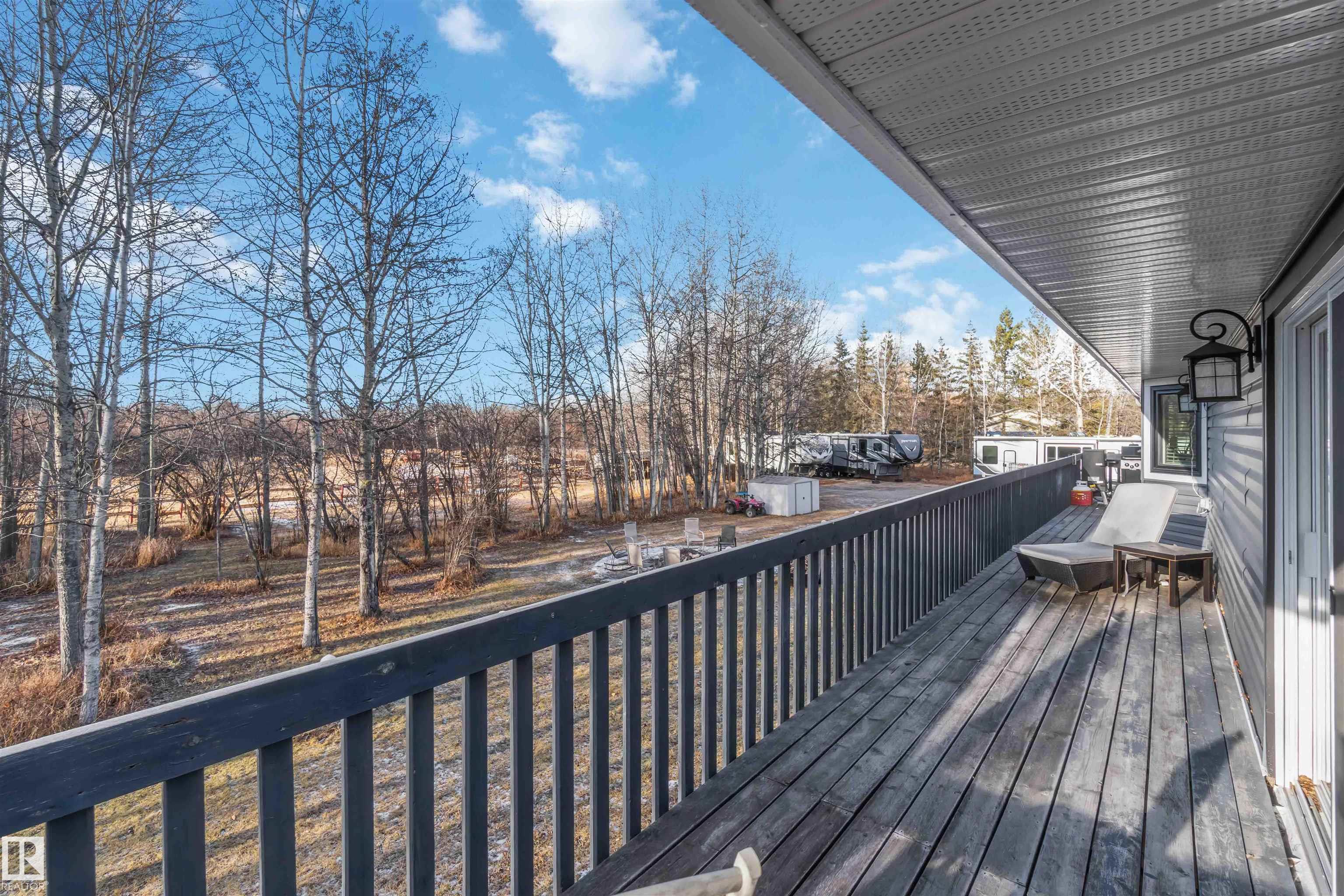 Enjoy peaceful country living just 15 minutes from West Edmonton in Meadow Crest Estates. This walk-out bi-level sits on 3.41 acres and features an open-concept layout that blends the living room, chef’s dream kitchen, and dining area into a bright, inviting space. The kitchen offers an eat-up island and direct access to a massive full-length deck shared with the primary bedroom. The main floor includes three bedrooms, with the primary offering dual closets and an ensuite. The walk-out basement adds excepti...