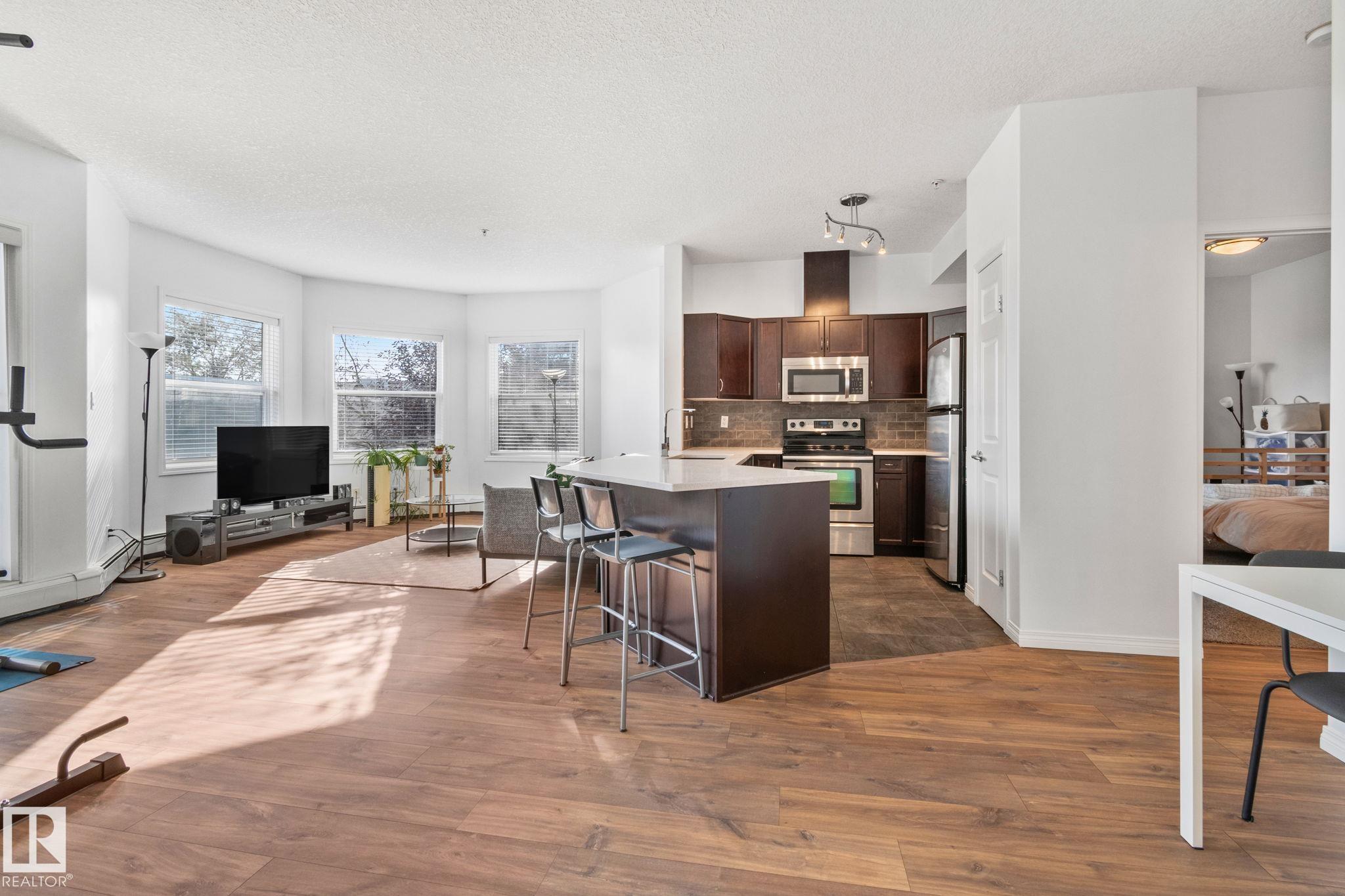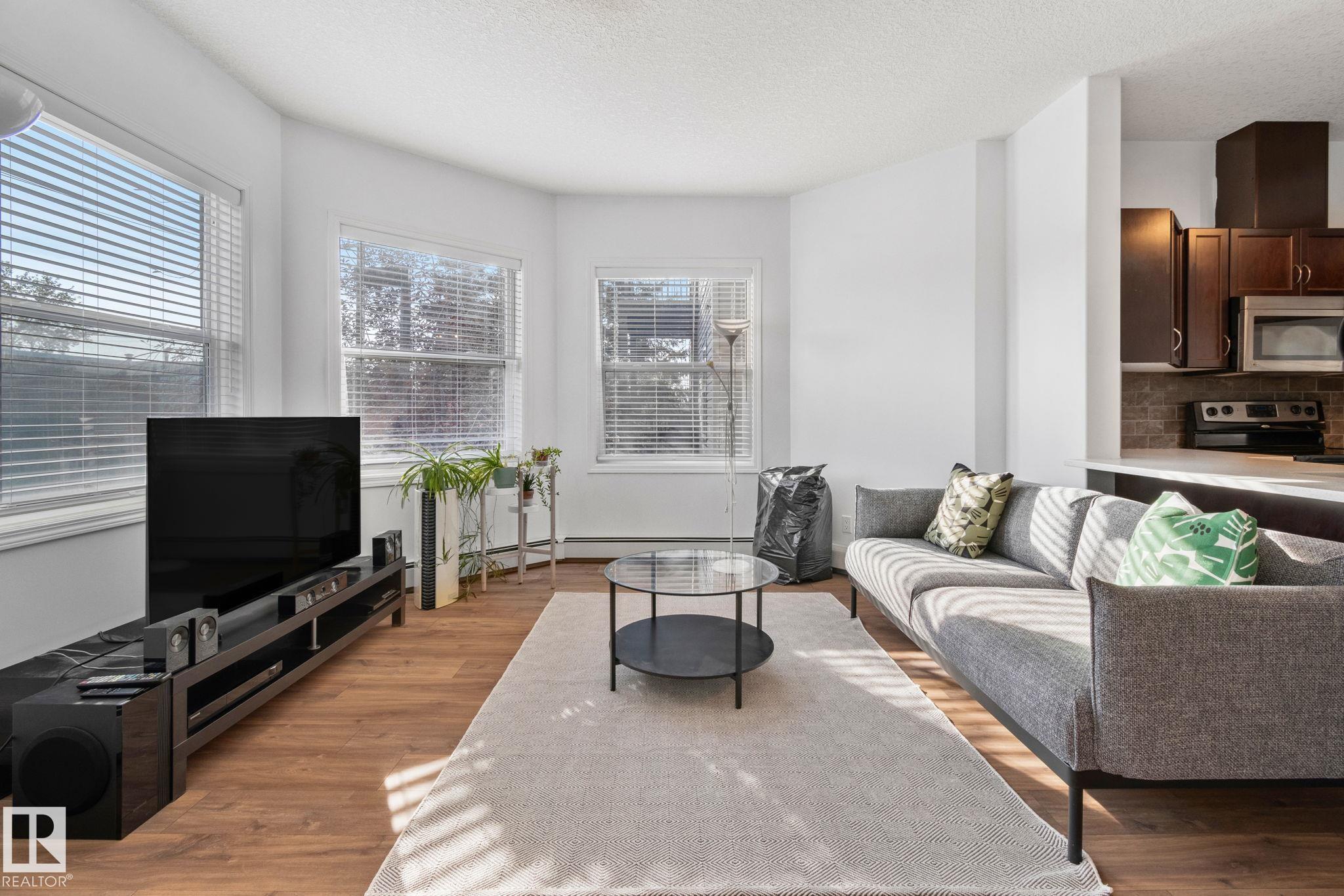 This bright, SOUTH-FACING 2-bedroom, 2-bath condo offers over 1,040 SqFt of open, inviting living space in one of Edmonton’s most desirable areas—steps from Mill Creek Ravine, Whyte Avenue, local cafés, and boutique shops. Recent updates include NEW laminate flooring in the living room/dining area & NEW carpet in the primary bedroom. Enjoy the ease of IN-SUITE laundry, two TITLED parking stalls (one underground & one surface), an underground storage cage, & plenty of in-unit storage. Perfect for first-time ...