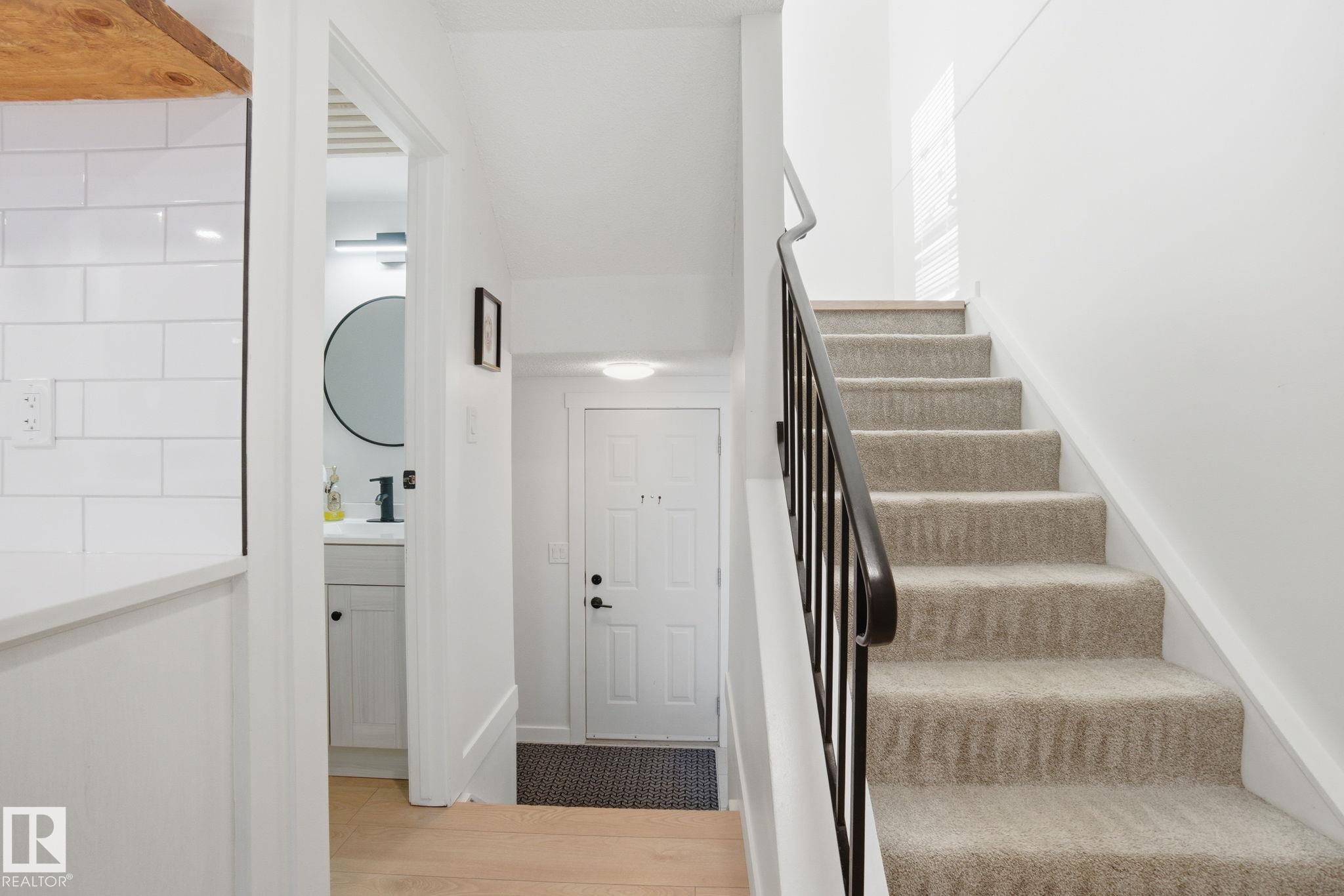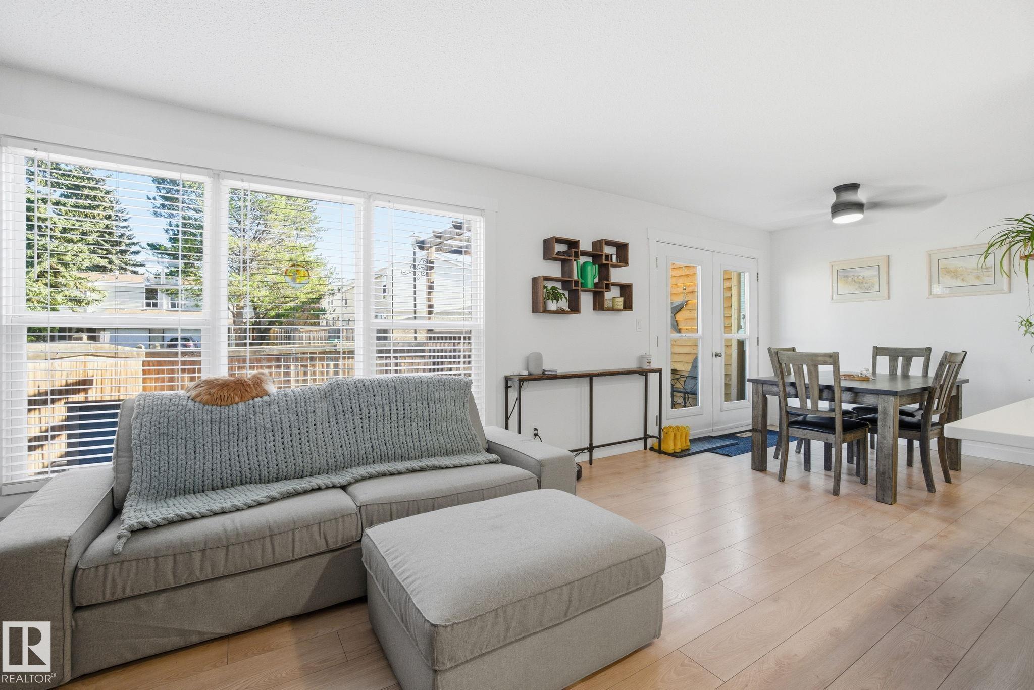 Beautifully renovated 2-storey townhome in Grandin Village! Step into a bright open-concept kitchen with stylish two-tone cabinetry, feature shelving, a sparkling backsplash, and extra storage. The adjacent dining and living rooms feel spacious and inviting, anchored by custom built-ins and a cozy fireplace—perfect for winter nights. Large windows and patio doors flood the main floor with natural light and open to a private backyard retreat with deck, pergola, and planter boxes—ready for your veggie garden....