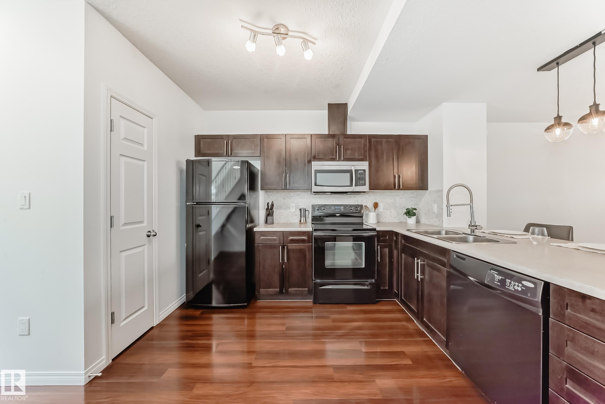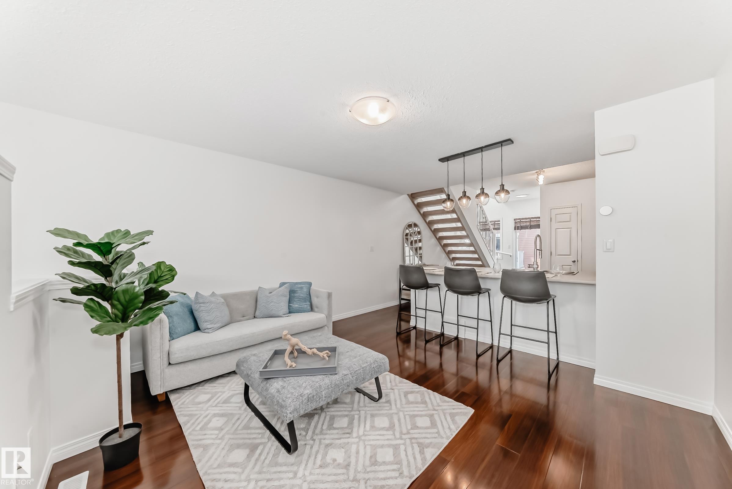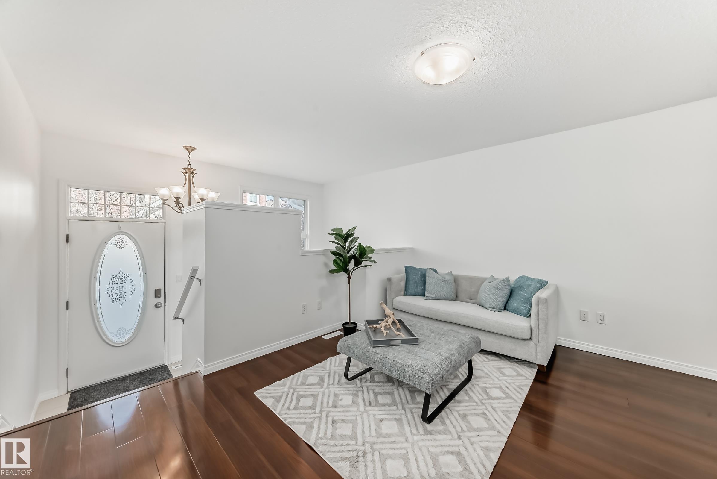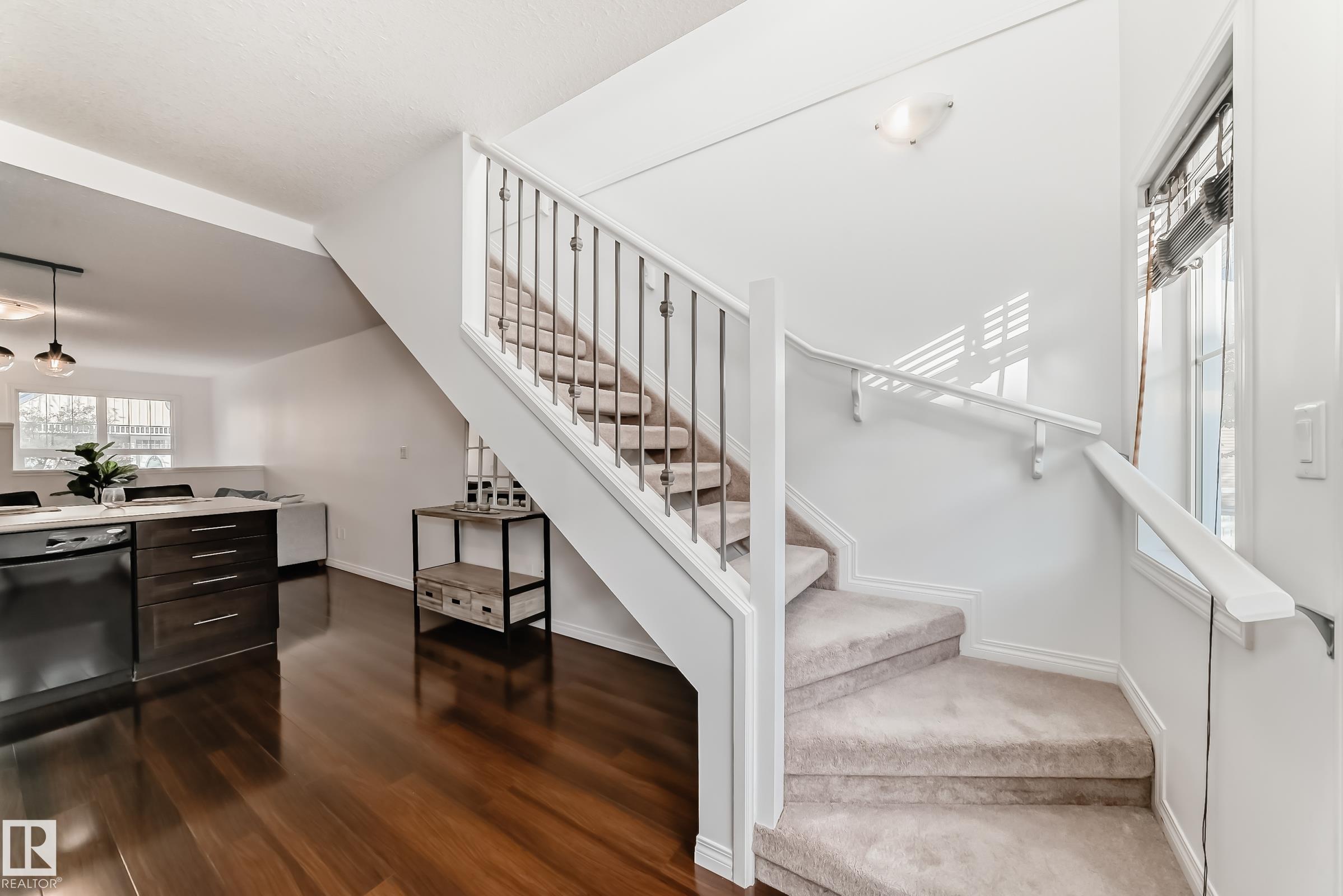 Don't miss your chance to live in Terwillegar Towne, one of the city's most desirable neighborhoods. This 2 storey home is perfect for the first time buyer, if you're looking to downsize or looking for an easy home to maintain. This fabulous home offers 2 bedrooms, one comes with an ensuite and the other has access to a full bathroom. Conveniently located upstairs is the laundry. The main floor features glistening upgraded laminate floors, half bathroom, large open kitchen with eating bar and black applianc...