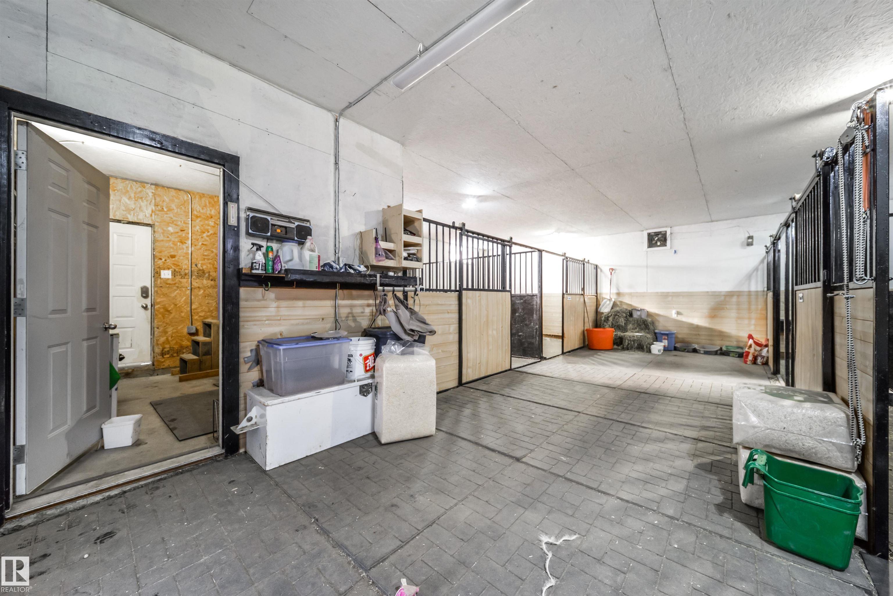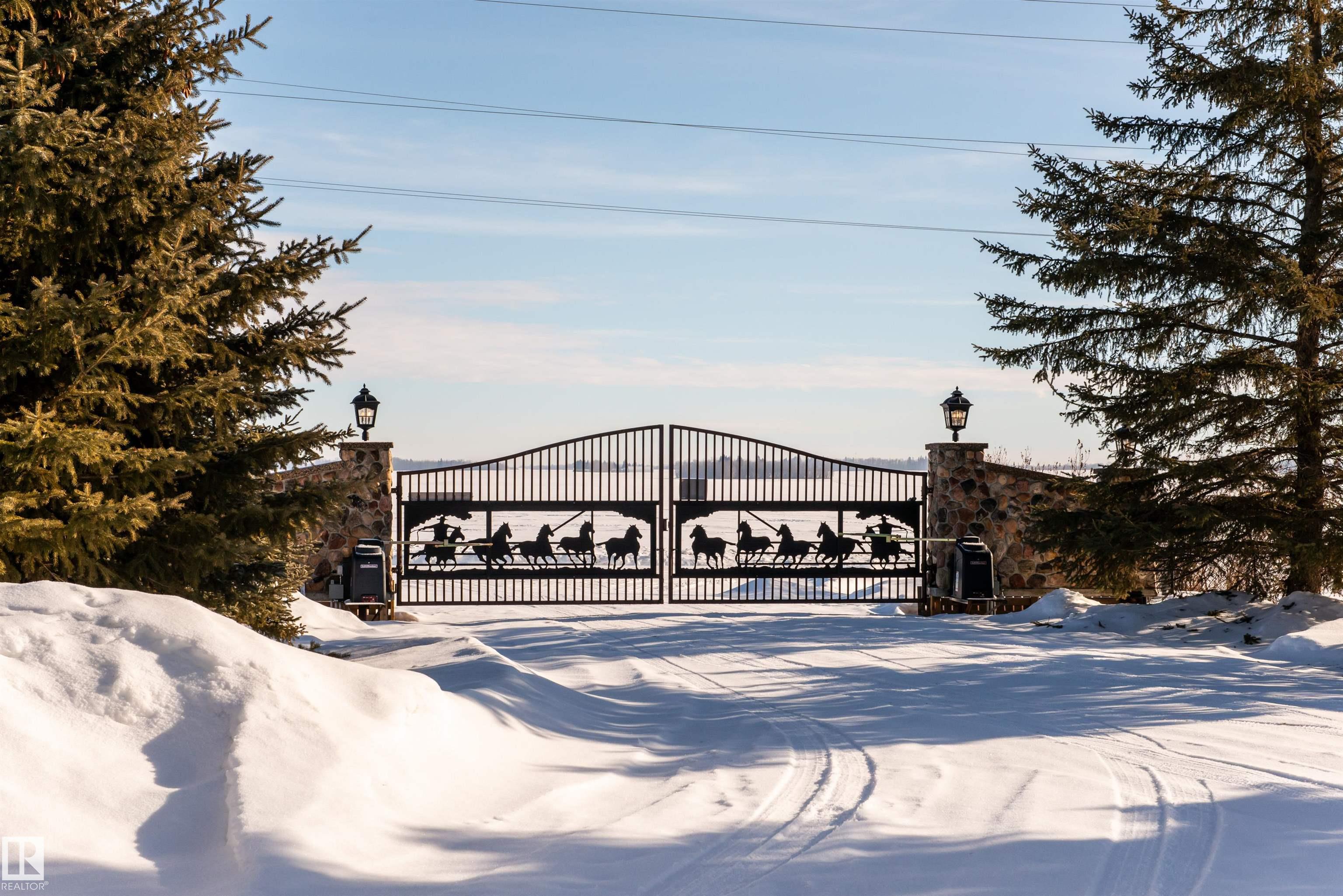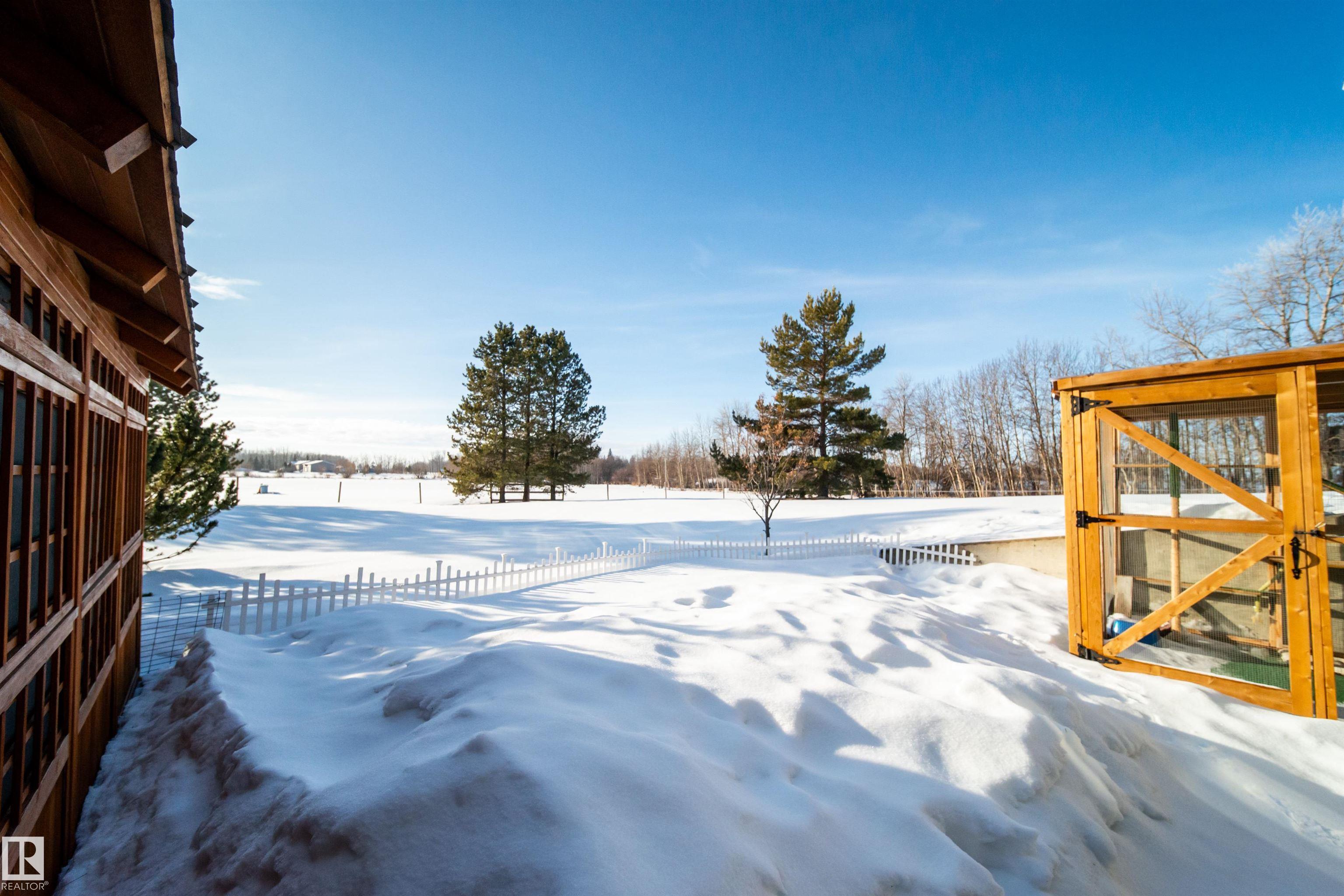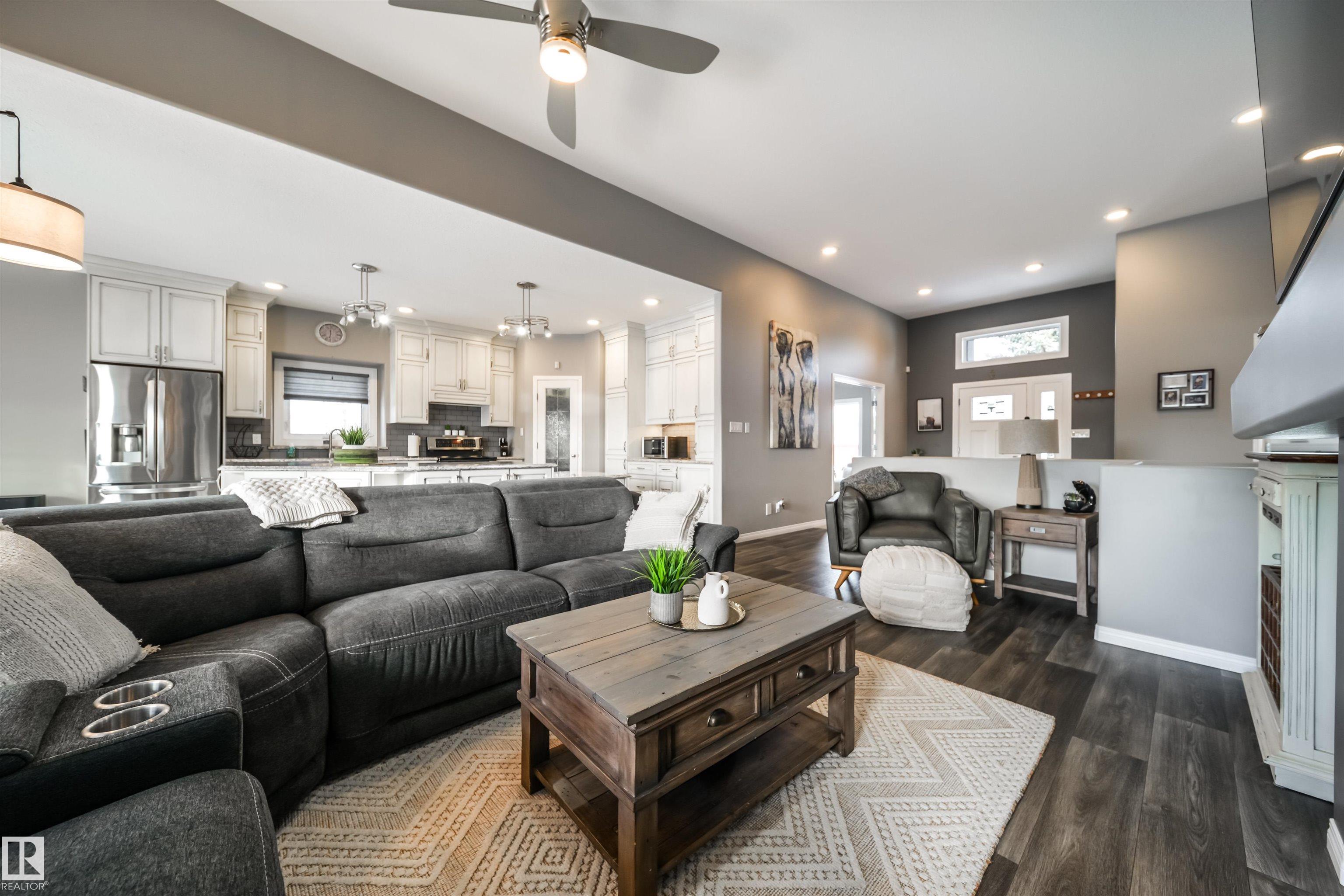 Bring the family and the horses! This beautifully updated 3 bedroom, 3 bath walkout bungalow sits on 12.92 acres just 20 minutes from St. Albert and blends modern comfort with acreage living. The bright open-concept main floor features beautiful kitchen with quartz island, stainless appliances, walk-in pantry, and south-facing views from the dining area with access to a covered deck. The living room offers 11’ ceilings, large windows, and a cozy gas fireplace. A spacious den, laundry/boot room, full bath, a...