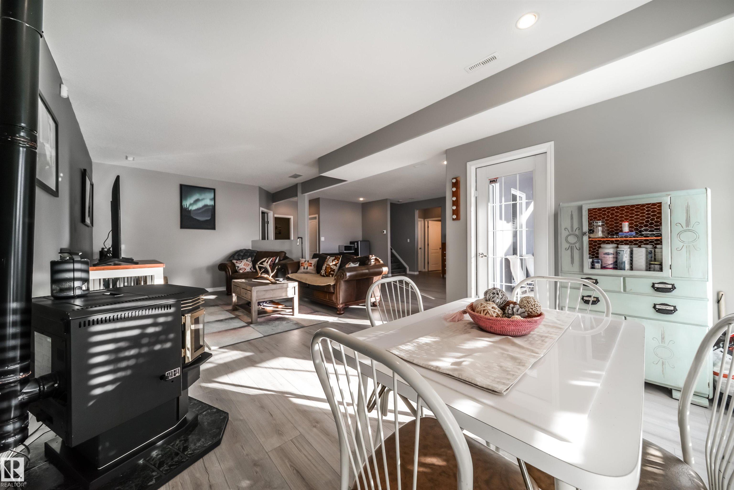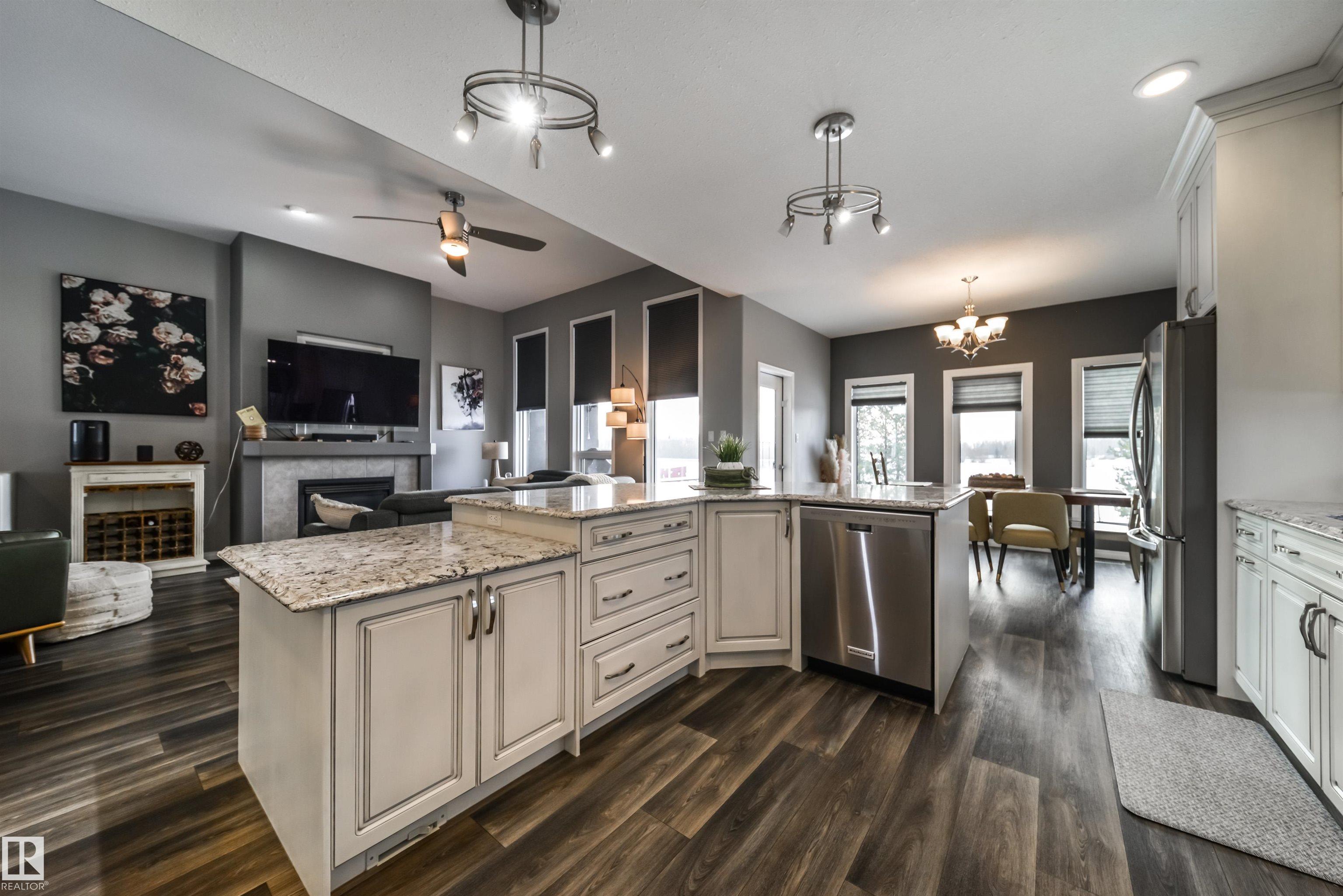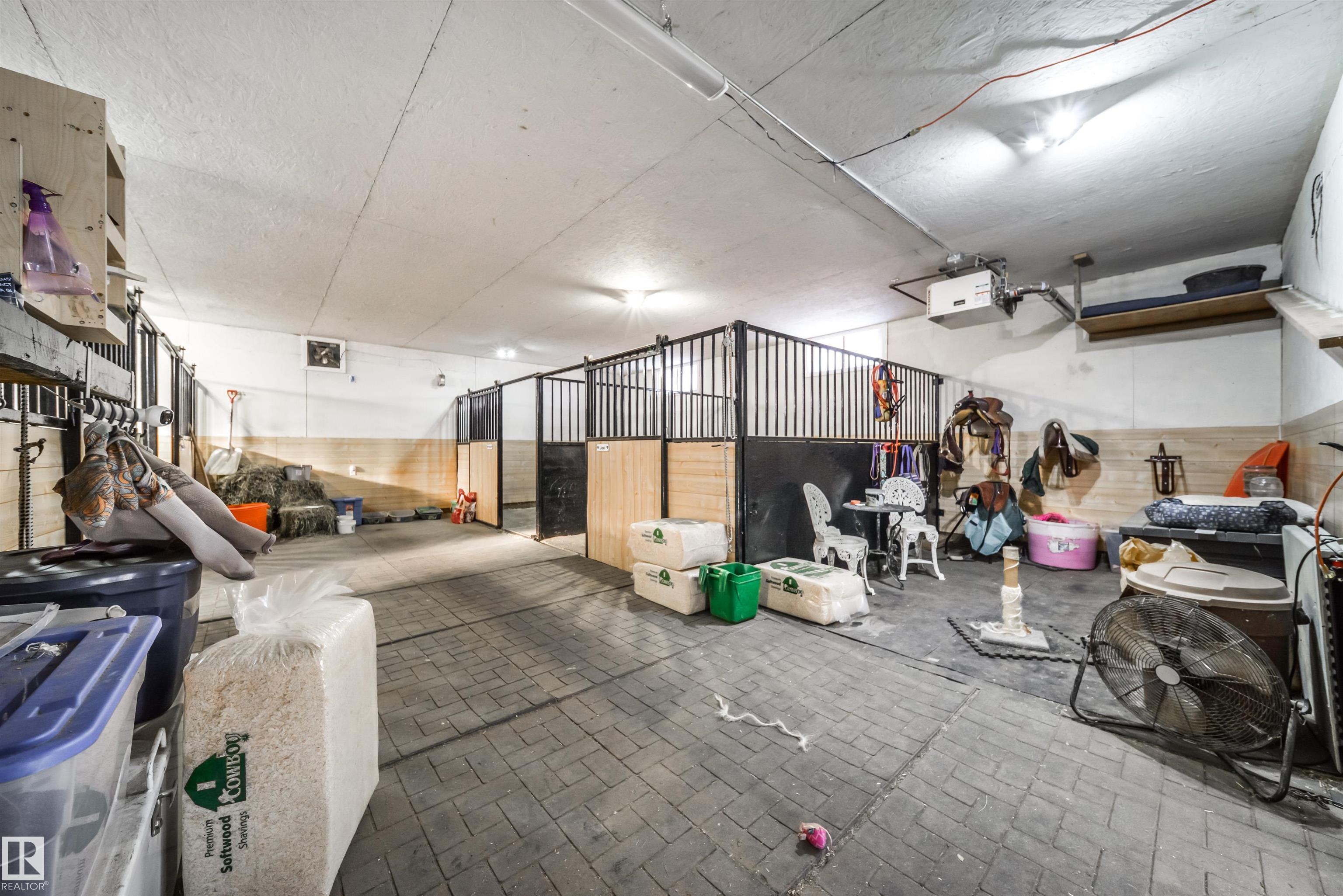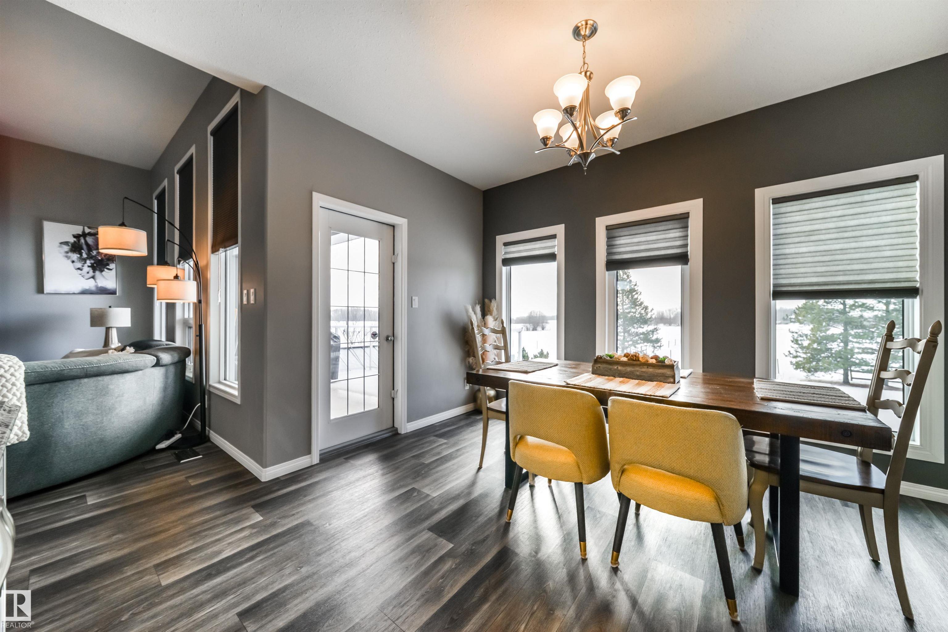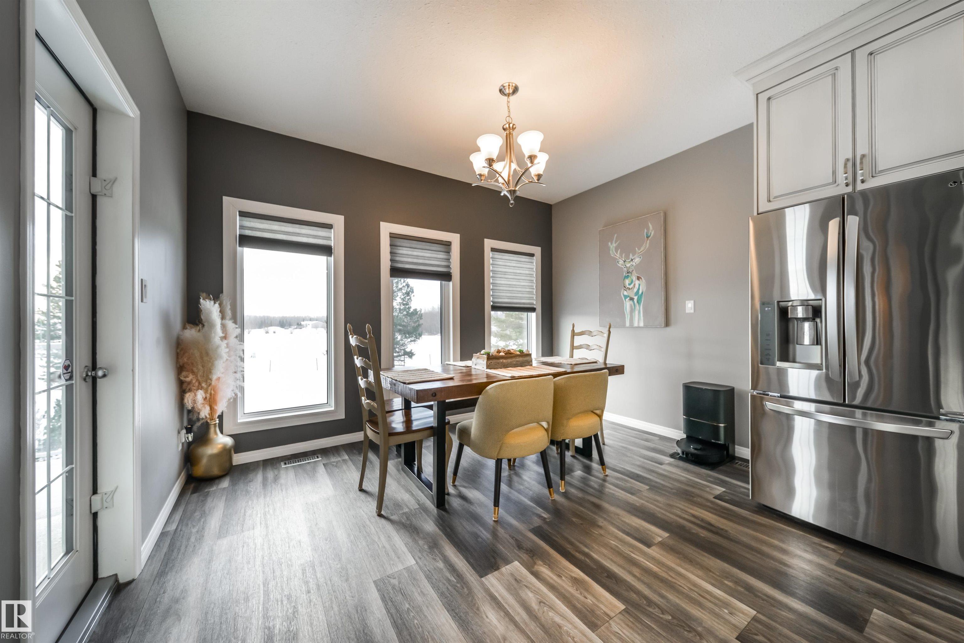 Bring the family and the horses! This beautifully updated 3 bedroom, 3 bath walkout bungalow sits on 12.92 acres just 20 minutes from St. Albert and blends modern comfort with acreage living. The bright open-concept main floor features beautiful kitchen with quartz island, stainless appliances, walk-in pantry, and south-facing views from the dining area with access to a covered deck. The living room offers 11’ ceilings, large windows, and a cozy gas fireplace. A spacious den, laundry/boot room, full bath, a...