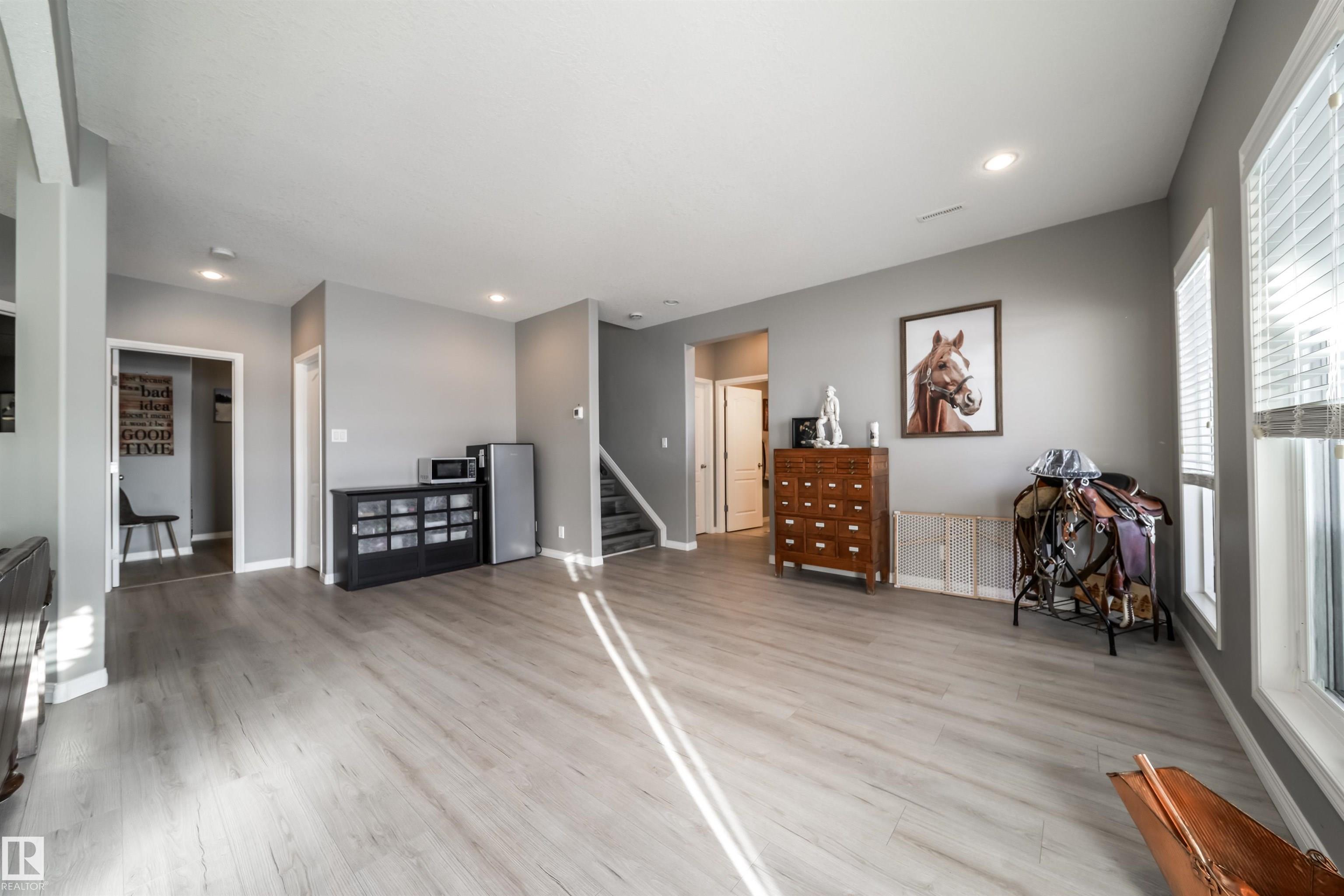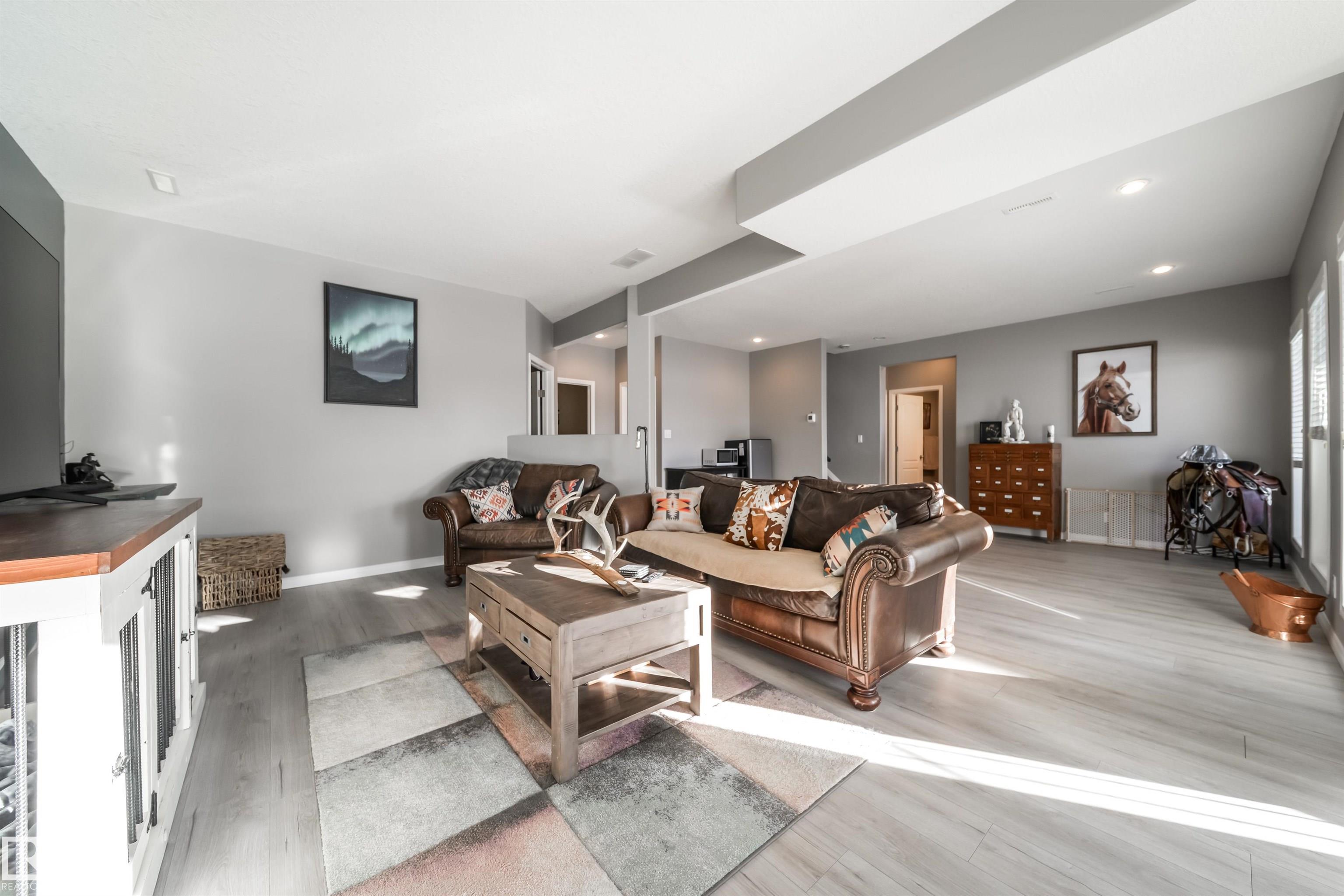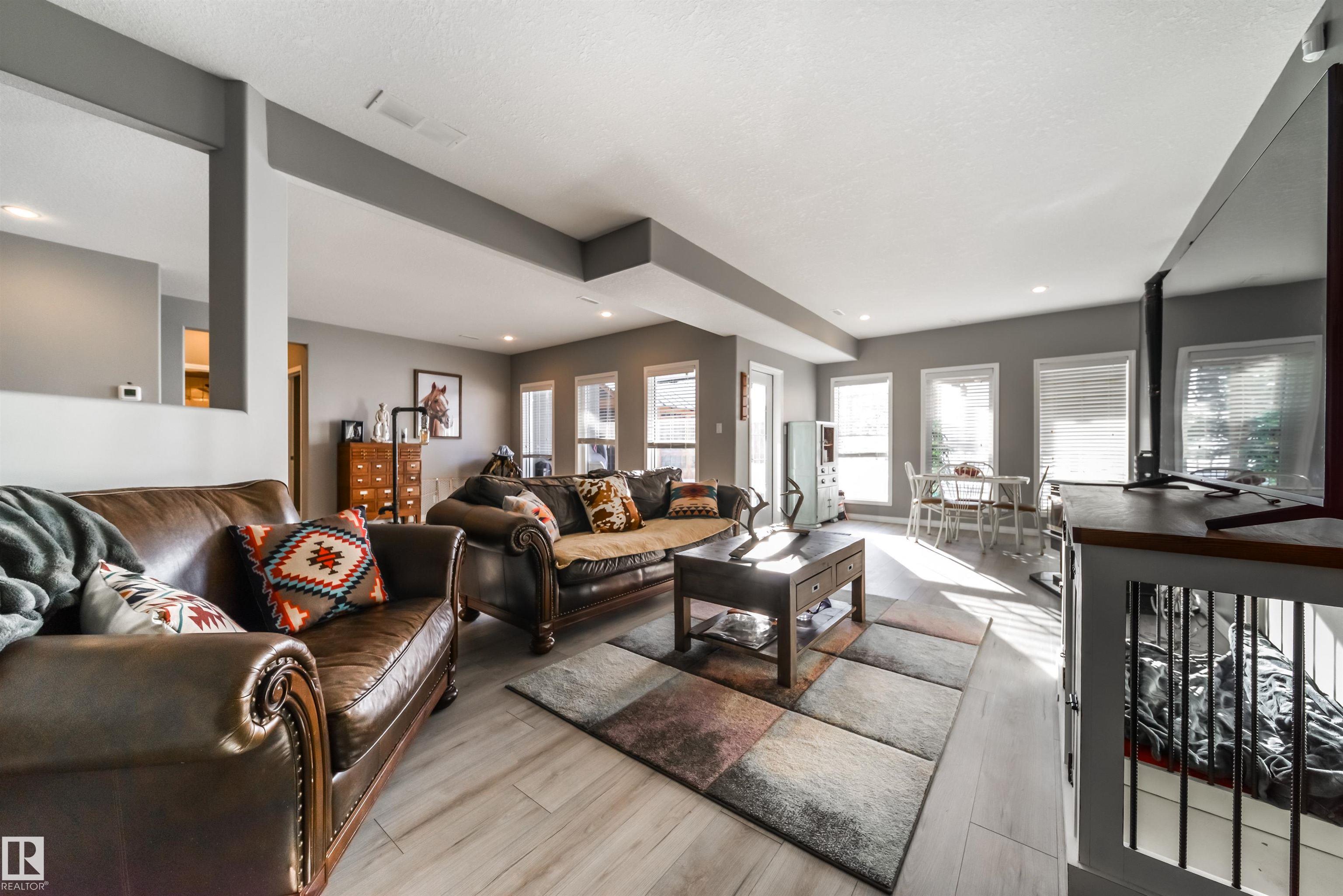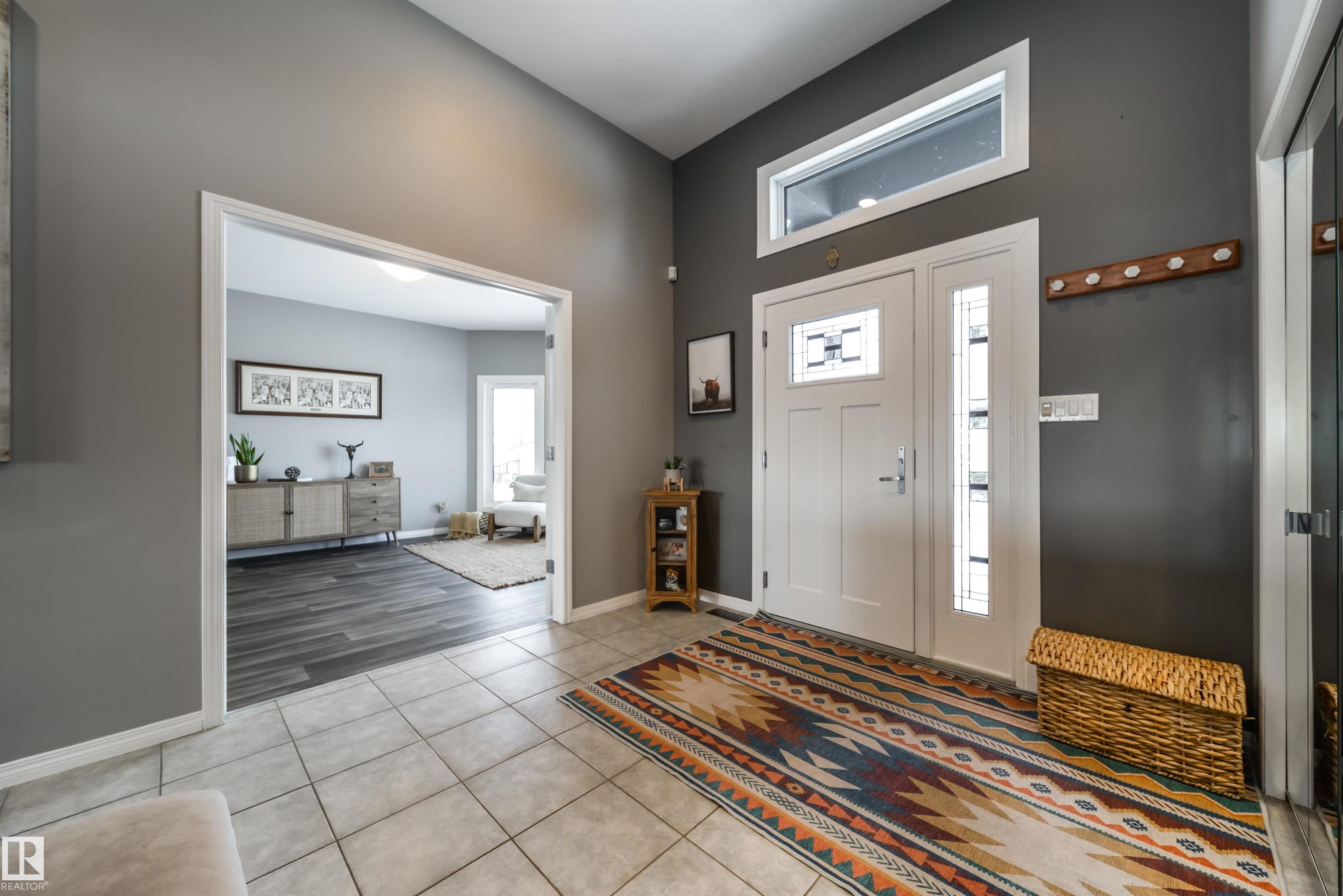 Bring the family and the horses! This beautifully updated 3 bedroom, 3 bath walkout bungalow sits on 12.92 acres just 20 minutes from St. Albert and blends modern comfort with acreage living. The bright open-concept main floor features beautiful kitchen with quartz island, stainless appliances, walk-in pantry, and south-facing views from the dining area with access to a covered deck. The living room offers 11’ ceilings, large windows, and a cozy gas fireplace. A spacious den, laundry/boot room, full bath, a...