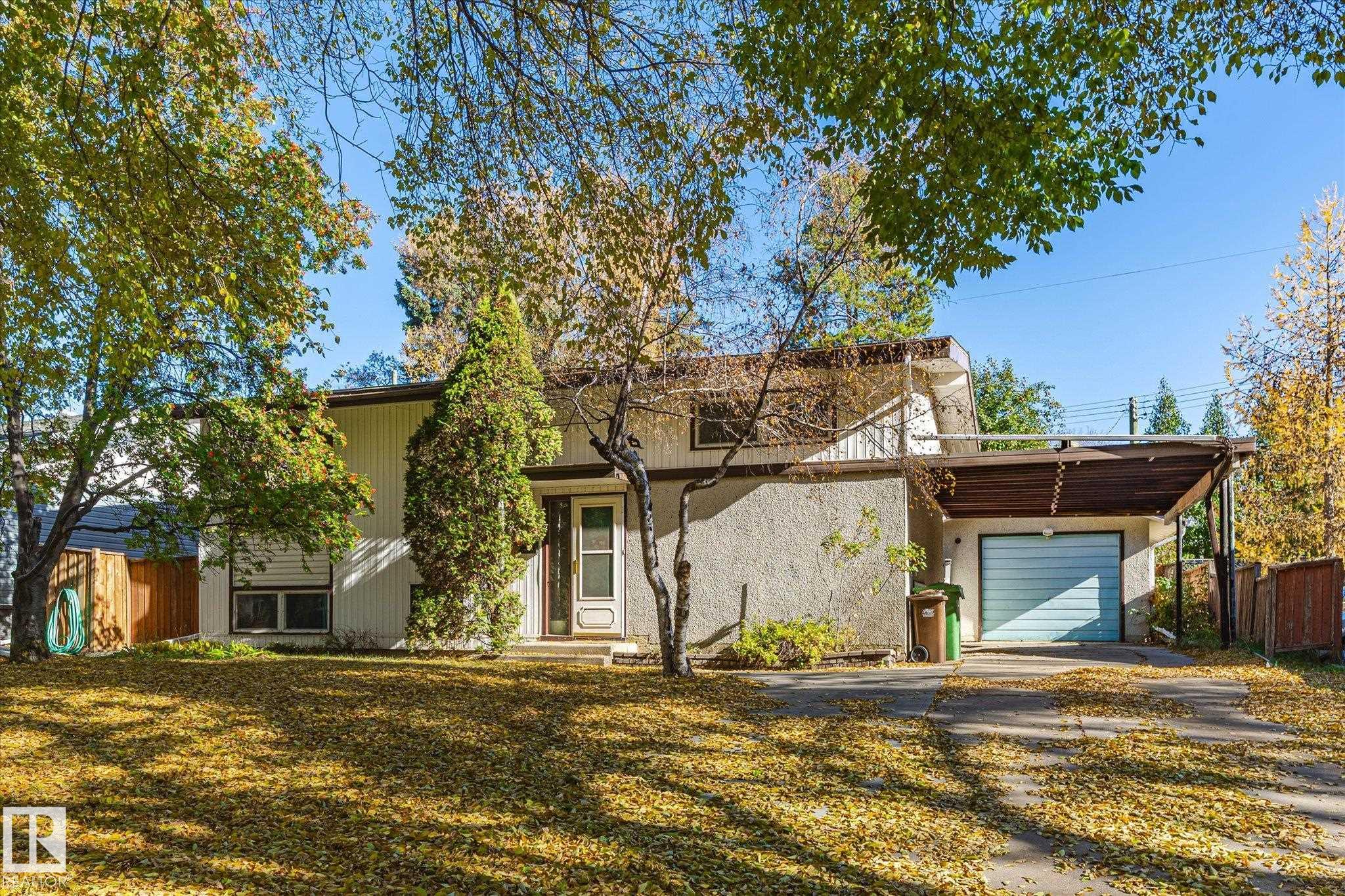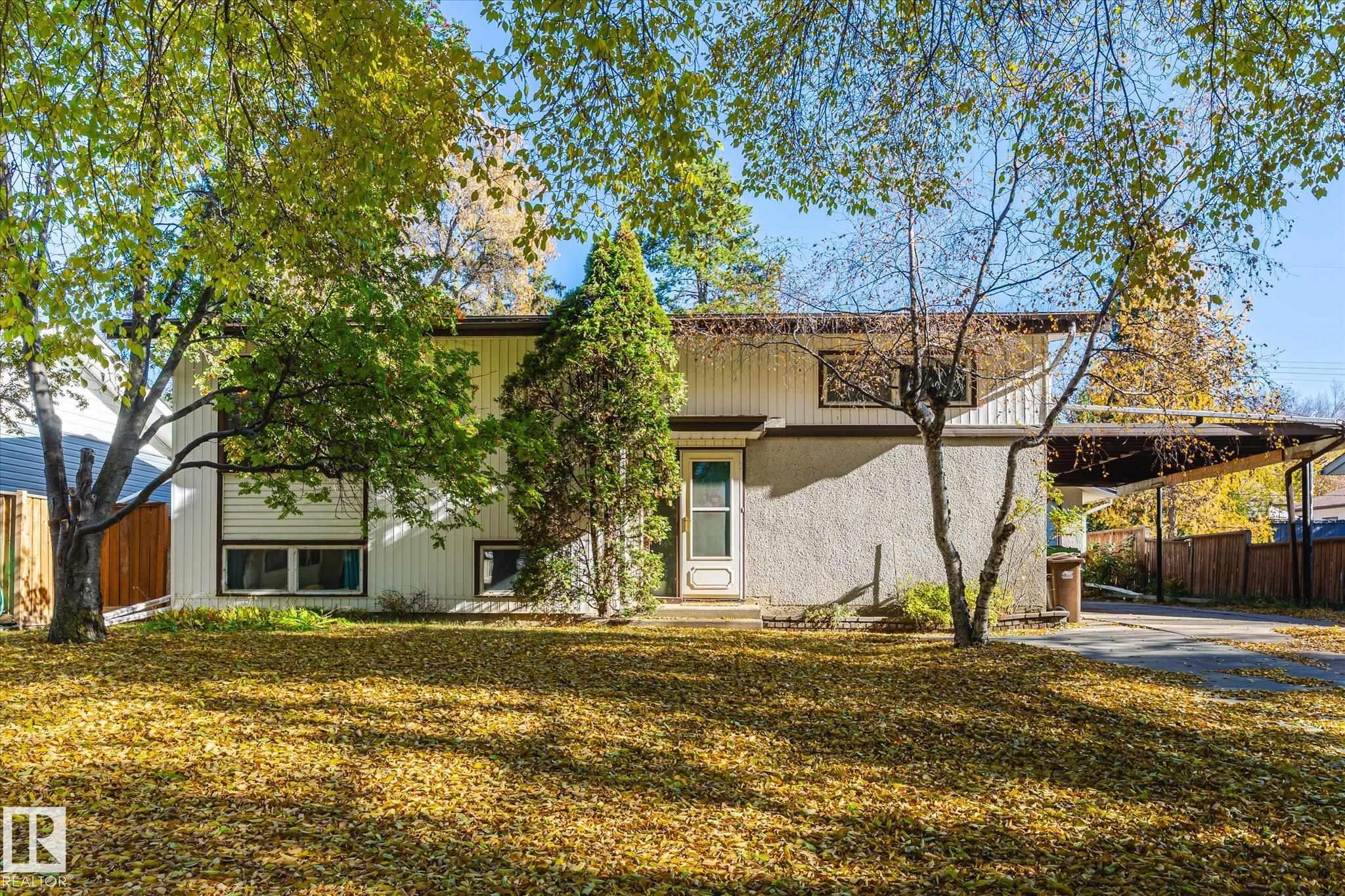 Offered for sale for the first time on MLS. Located on a beautiful tree line this home is perfect for fixing up or redevelopment. 62' x 110' LOT; 628 m2; R2 Zoning. Visualize what this Mid Century Modern, 836 sq ft bilevel will look like and you will immediately love the opportunity. Vaulted ceilings throughout the main level. Kitchen space overlooking the backyard. Main floor master bedroom and bathroom. Basement has 3 bedrooms, bathroom and recreation room. Hot Water Tank 2023. Single garage. Amazin...